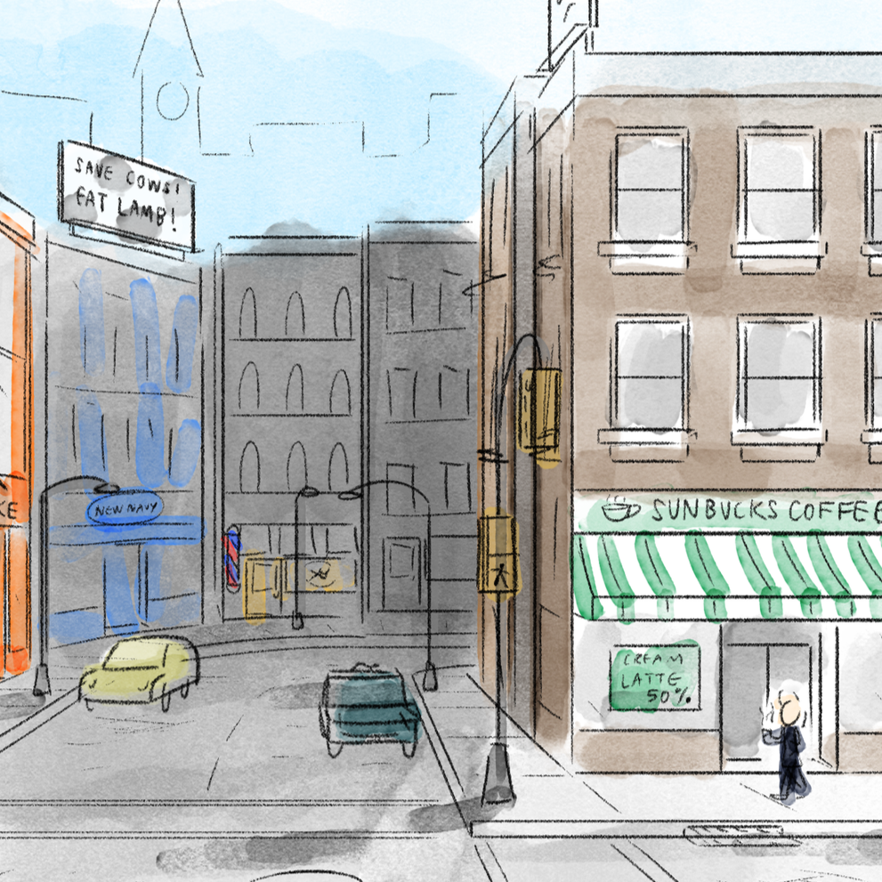 When designing the city of Lidamore, we aimed to make the look of the world look like an animated reality with a straight architect style. The design style was not intended to be over exaggerated like non-parallel lines or curved buildings, it was aimed for a more perspective heavy design to capture the realistic cartoony reality that would make the audiences feel like they are in the world themselves.